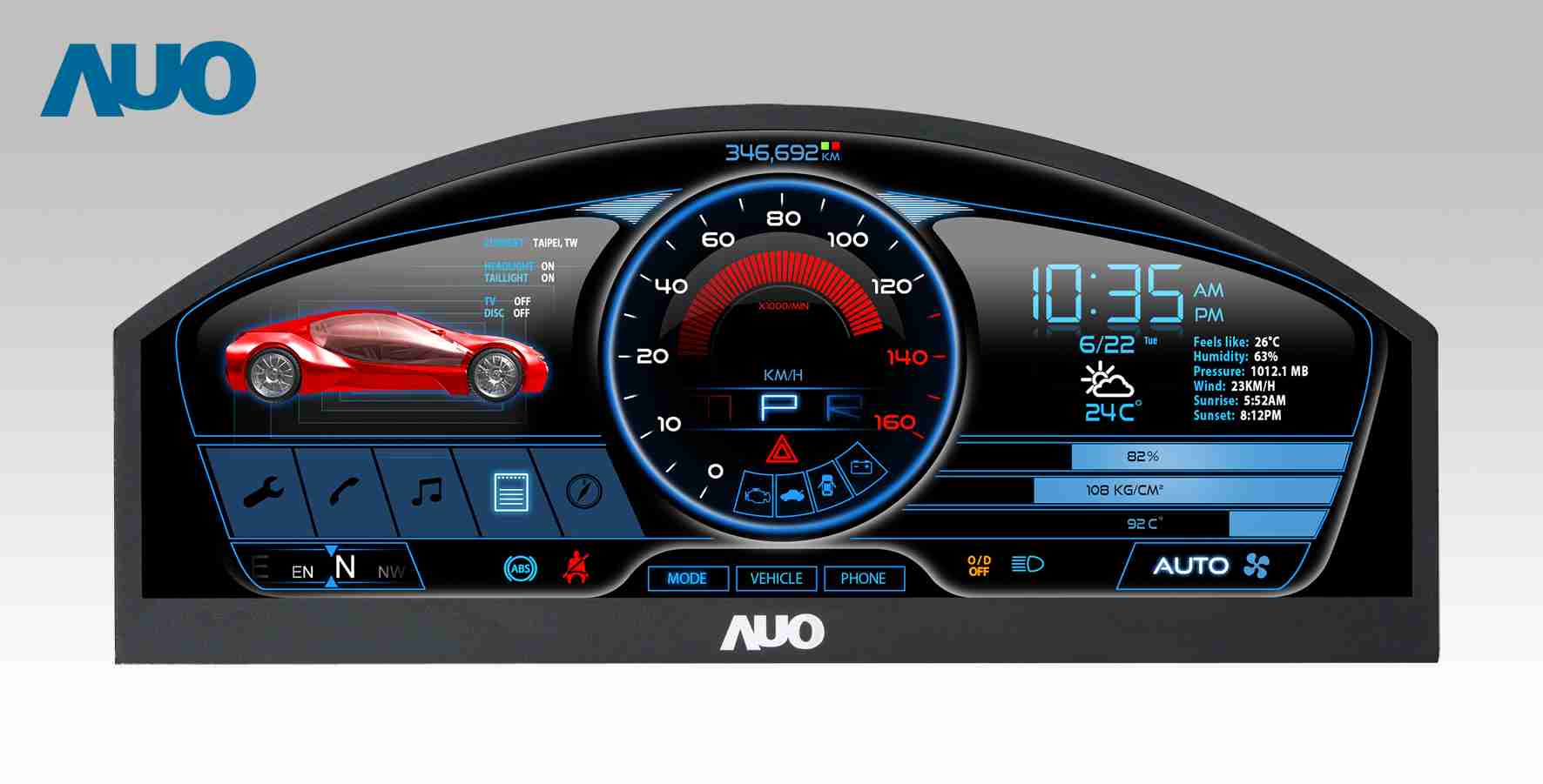 开云电子 12.3吋超高解析异型切割车用面板,,拥有流线外观及精细画质